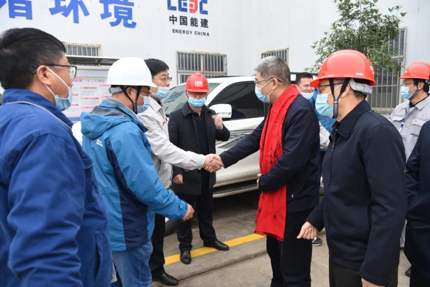 揭小健一行首先来到丰电三期项目总承包单位中南设计院项目部,看望慰问各参建单位值守人员。