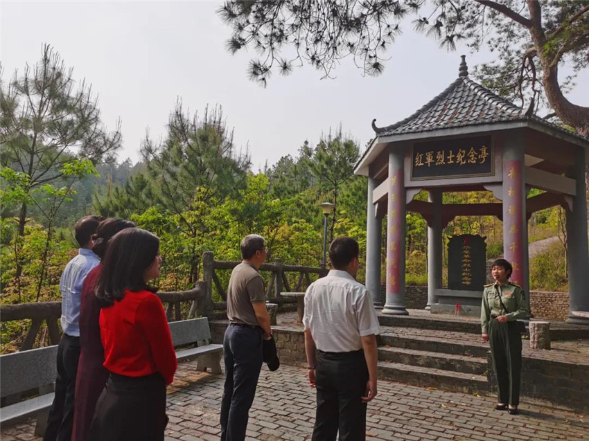 期间,揭小健一行来到叶坪乡黄沙村华屋后山的红军烈士纪念亭,缅怀牺牲的十七名红军烈士,聆听微党课《十七棵松》。在叶坪革命旧址群,瞻仰了“一苏大”旧址、中共苏区中央局旧址、红军烈士纪念亭、红军检阅台、红军烈士纪念塔、公略亭、博生堡等,探寻共和国摇篮那段艰苦奋斗的红色历史,接受党性锻炼和政治思想洗礼。