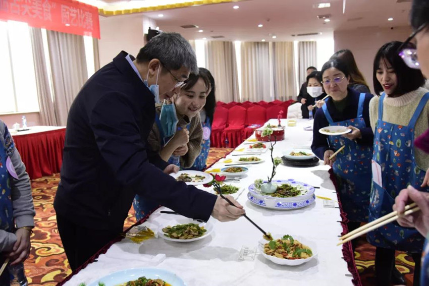 评委们通过对“色、香、味、型”等方面进行评分,最终评选出辣椒炒肉、红烧鲫鱼、小炒牛肉和家乡豆腐4组菜品的前三名。集团公司领导纷纷到场品尝美食,进行点评,为厨娘们精湛的厨艺点赞,并送上鲜花。